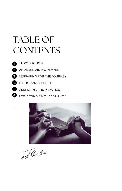 In a world filled with noise and distraction, prayer offers a sanctuary for the soul. It is a practice that transcends time and culture, allowing individuals to connect with something greater than themselves. This book is designed to guide you on a journey of understanding and deepening your prayer life, whether you are new to the practice or seeking to enrich your existing relationship with prayer.